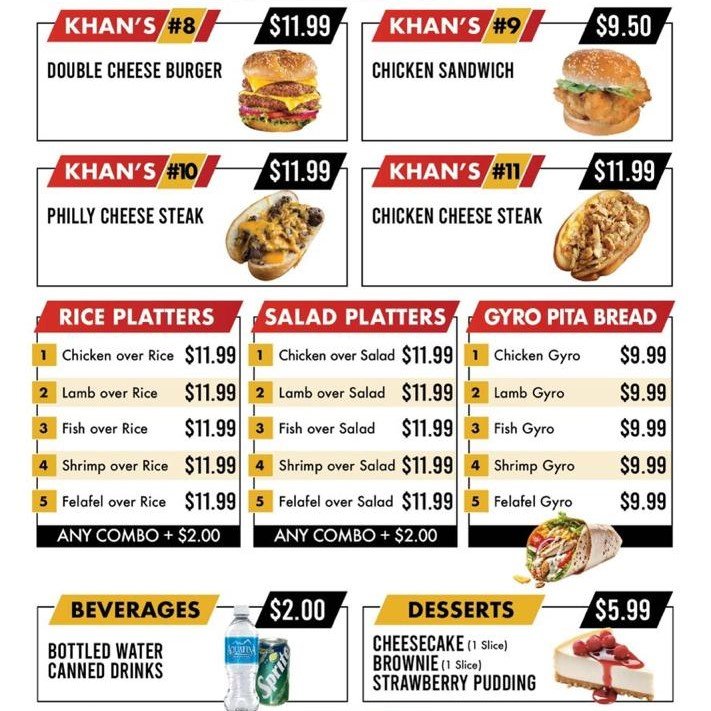 Loaded Fries topped with pickles, coleslaw, cheese, and Khans’ signature sauce for the ultimate flavor boost!